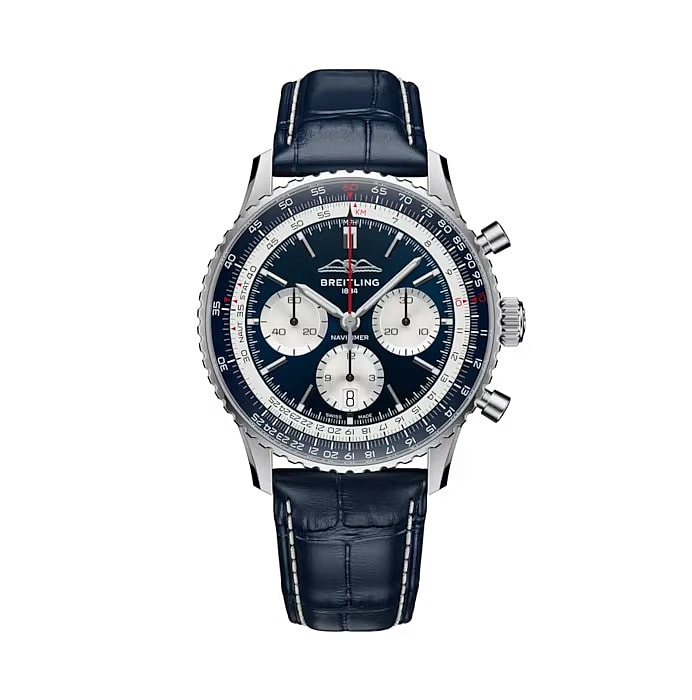 Featuring the Navitimer’s characteristic 43mm stainless steel case, the watch ticks along thanks to the 70-hour power reserve of the Breitling Manufacture Caliber B01 within, while a textured blue alligator leather strap pairs handsomely with its atmosphere-inspired dial and striking white chronograph sub-dials. The “pioneering spirit” of the Concorde deserves a timepiece worthy of its legendary accomplishments, and for $10,600, a luxurious nod to aviation and horological history can be yours via the new Breitling Navitimer B01 Chronograph.