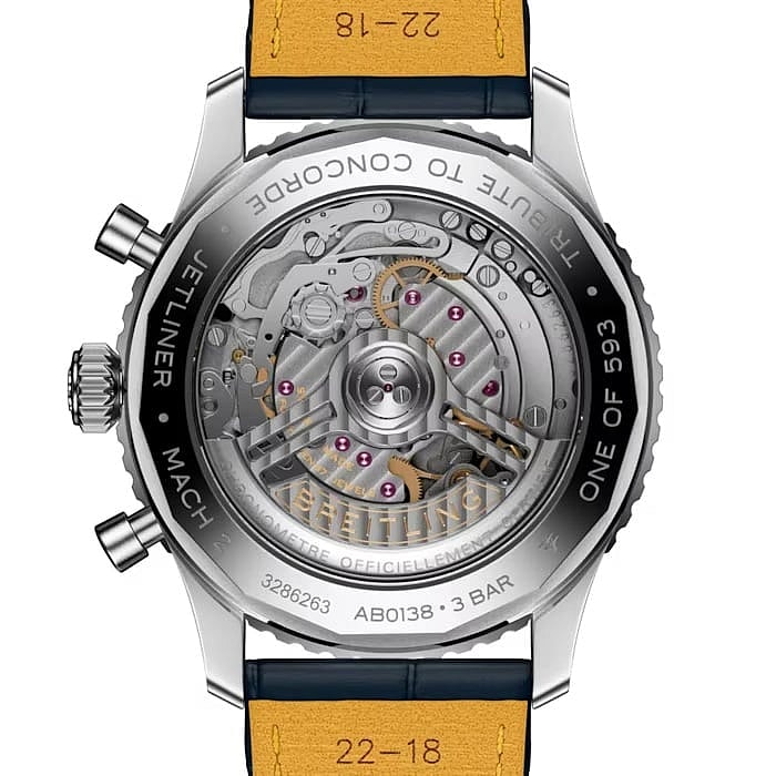 The latest Navitimer Chronograph is limited to just 593 editions in a fitting nod to the Olympus 593 turbojet engines propelling the plane and its 100 very lucky passengers on speedy Transatlantic flights. The blue dial of the Navitimer Chrono was designed in a nod to the stratosphere as seen from the legendary commercial plane, while a series of caseback engravings (including “Tribute to Concorde,” “Jetliner,” and “Mach 2″) grace the limited-edition watch.