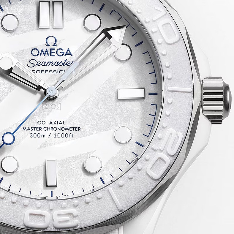 The combination, according to the preferred watchmaker of James Bond, delivers “a blend of sleek beauty and lightweight strength” in a suitably winter-inspired all-white build, all the more fitting to reflect on legendary highlights like dual gold medal wins by the United States men’s and women’s ice hockey teams.