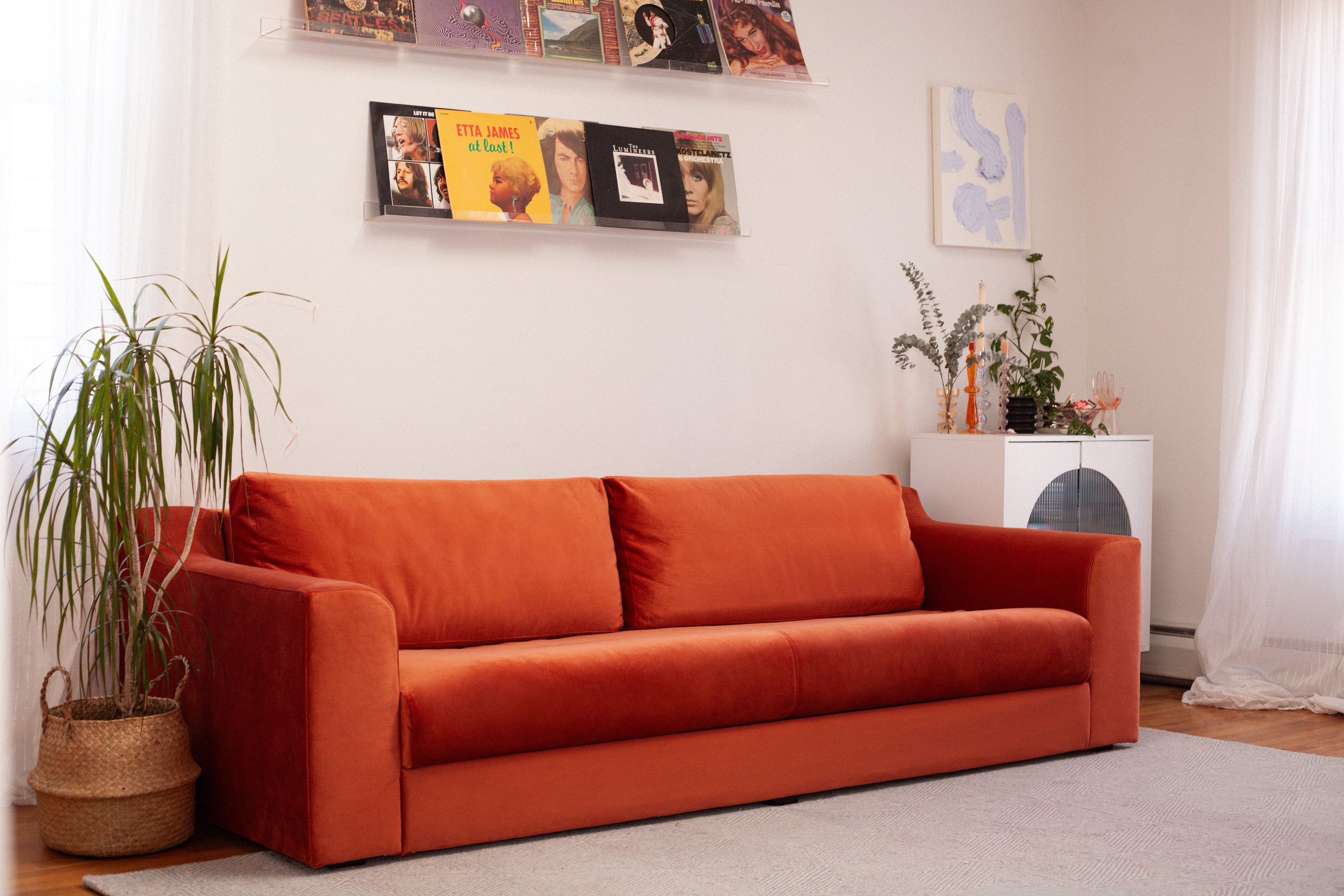 Sabai’s Elevate collection of plush sofas and sectionals is the brand’s top-of-the-line range, starting at $2,995, but they also offer styles at lower prices, starting at $1,500 for the Essential sofa. While the comfy, low-profile Elevate line is described by Sabai as having a “modern farmhouse” aesthetic, it can easily channel a more retro-cool vibe, particularly when wrapped in a lively velvet colorway.
