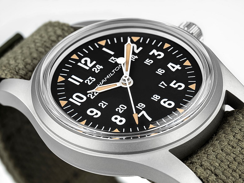 There are nods to Americana all around the new timepiece, especially its limited production run of 1,776 pieces in an homage to the signing of the Declaration of Independence. The agreeably priced special-edition release (it clocks in at $725 and is sure to sell quickly as of release day today) expertly blends “Hamilton’s heritage with one of its most sought-after military inspirations,” the company noted, complete with a caseback engraving honoring the illustrious milestone. The watchmaker calls back to its more than 130 years of history in the process, from railroad-based timekeeping to ingenious and tough watches found on battlefields and in the skies above.