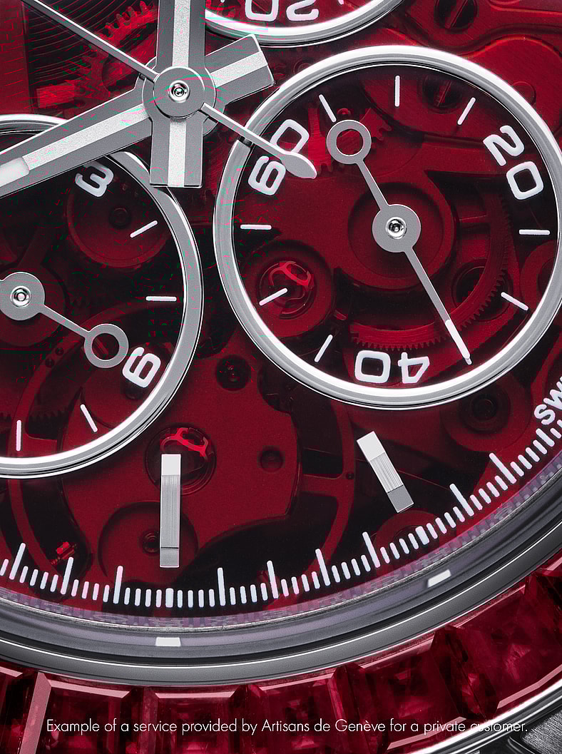 If you thought it was tricky to get your hands on a new Rolex, try the latest from Artisans de Geneve on for size: The preferred horological outpost of the likes of Lenny Kravitz, Spike Lee and soccer legend Andrea Pirlo just dropped a stunning, wildly expensive custom red ruby Rolex Daytona.
