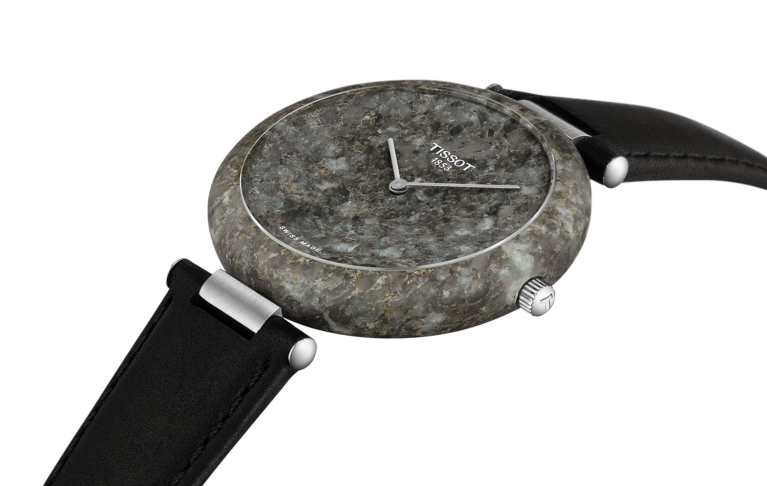 Tissot has a history of pushing watchmaking boundaries, from introducing fiberglass in 1969 with the Sidéral to creating the first plastic mechanical watch, the Idea 2001, in 1971. These horological experiments paved the way for the RockWatch, originally launched in 1985. The new version pays homage to its predecessor, with each watch case uniquely carved from natural alpine stone.