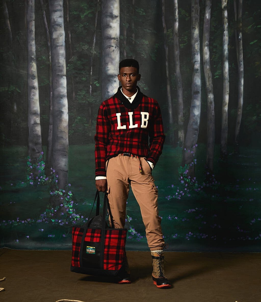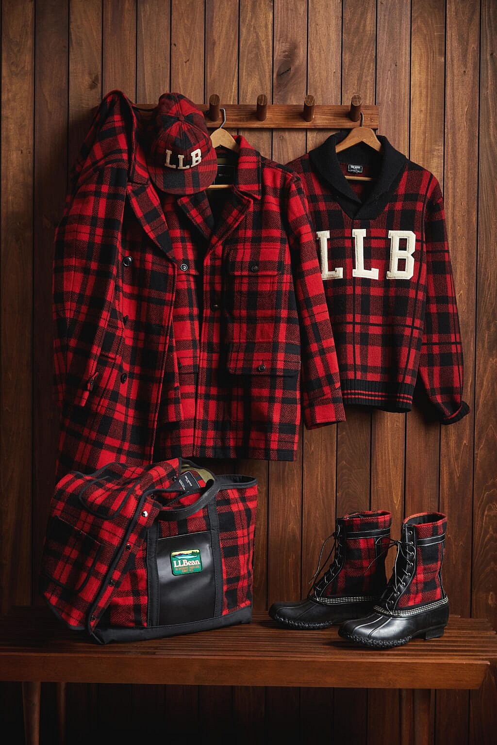 A shawl sweater dials up the cool factor even further, emblazoned with the initials “LLB” atop the same rich red-and-black plaid pattern. You can (and should) top off more minimal outfits with a plaid wool cap, also crafted from the same winter and holiday-friendly material.