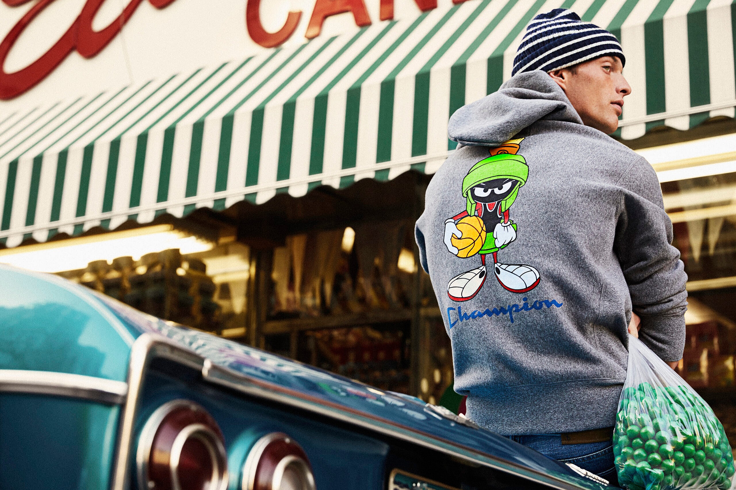 “I’ve loved Looney Tunes since I was young, so these classic characters really take me back. Getting to create a TS x Champion collection featuring these American icons made me feel like a kid in a candy store,” said Snyder in a statement released by the brand.
