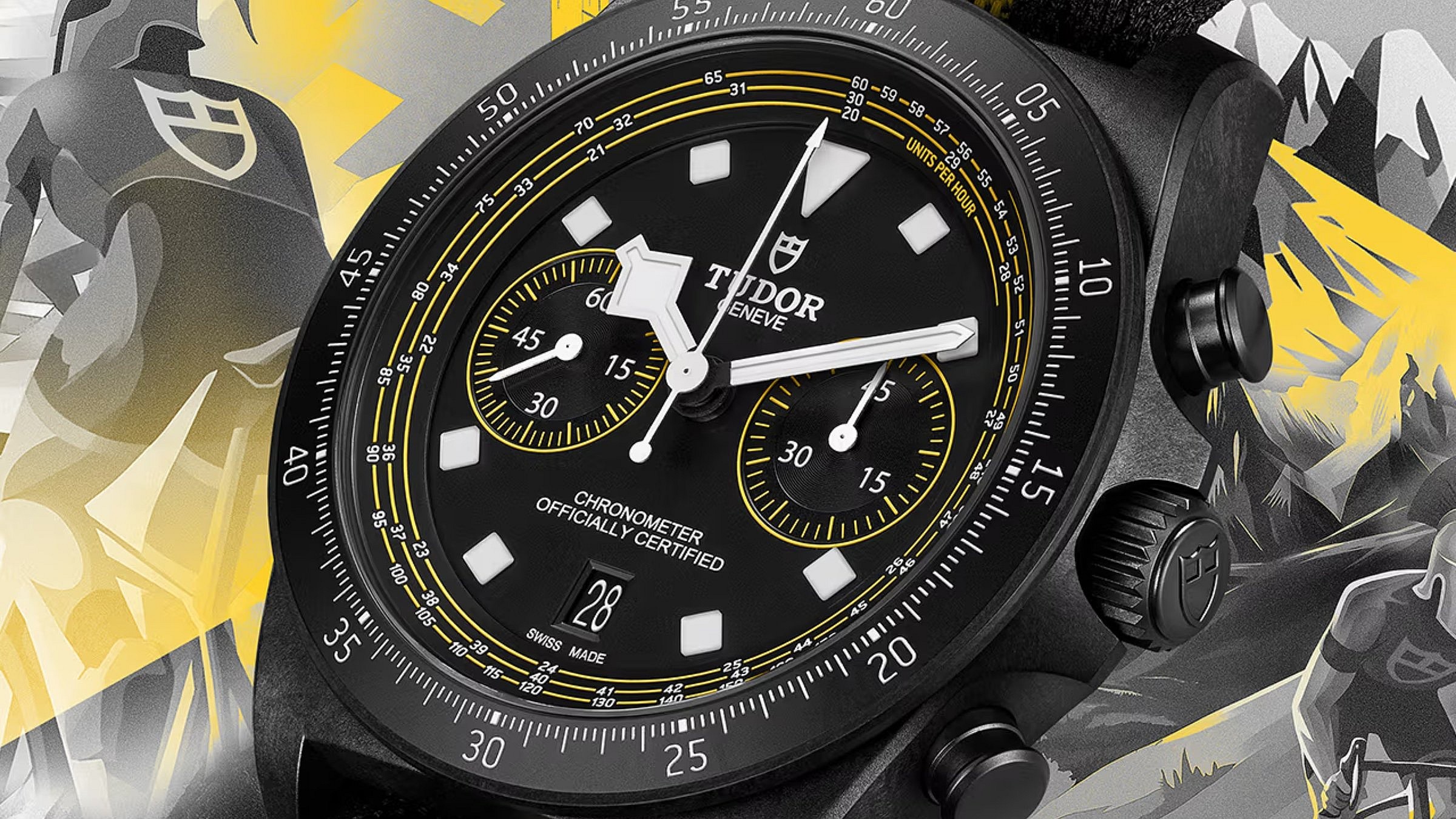 Fittingly, the watch is packed with the sort of bells and whistles a rider or team owner might find handy, from its 60-second subdial to its 45-minute timer and a 6-o’clock date window within a durable 43mm carbon composite case. The cycling-focused timepiece rides on the tail of the May release of another riding-centric watch from Tudor, a pink version of the Pelagos FXD Chrono paying tribute to the Giro d’Italia.