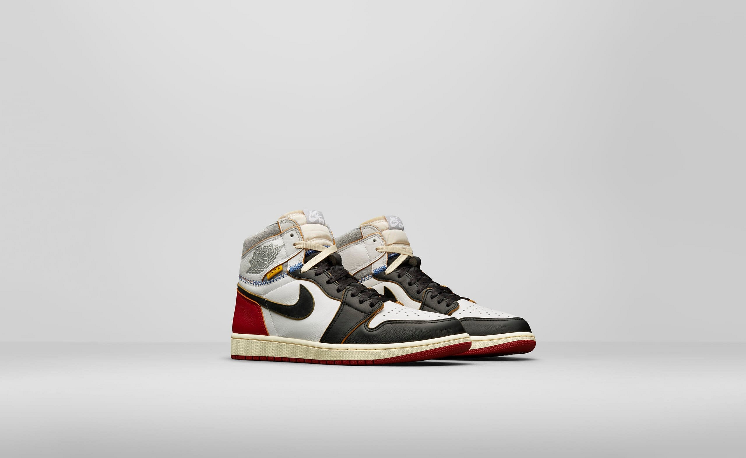 The collection features two colorways of the Union x Air Jordan 1, which has the silhouette of the classic Air Jordan 1 Retro High OG, and is inspired by a mashup of several of the model’s original colorways.