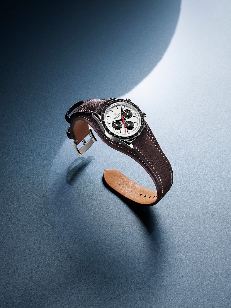 Under the guidance of parent company Breitling SA, Universal Genève looks to its illustrious past to chart a bold future: The ‘Nina’ Compax is a hearty nod to Finnish model Nina Rindt, a 1960s trackside fixture who timed her husband (champion driver Jochen Rindt) wearing none other than a Universal Genève Compax on an undeniably eye-catching bund strap. Now, the Universal Genève ‘Nina’ Compax heralds the return of the watchmaker with bold looks and distinctive performance top of mind.