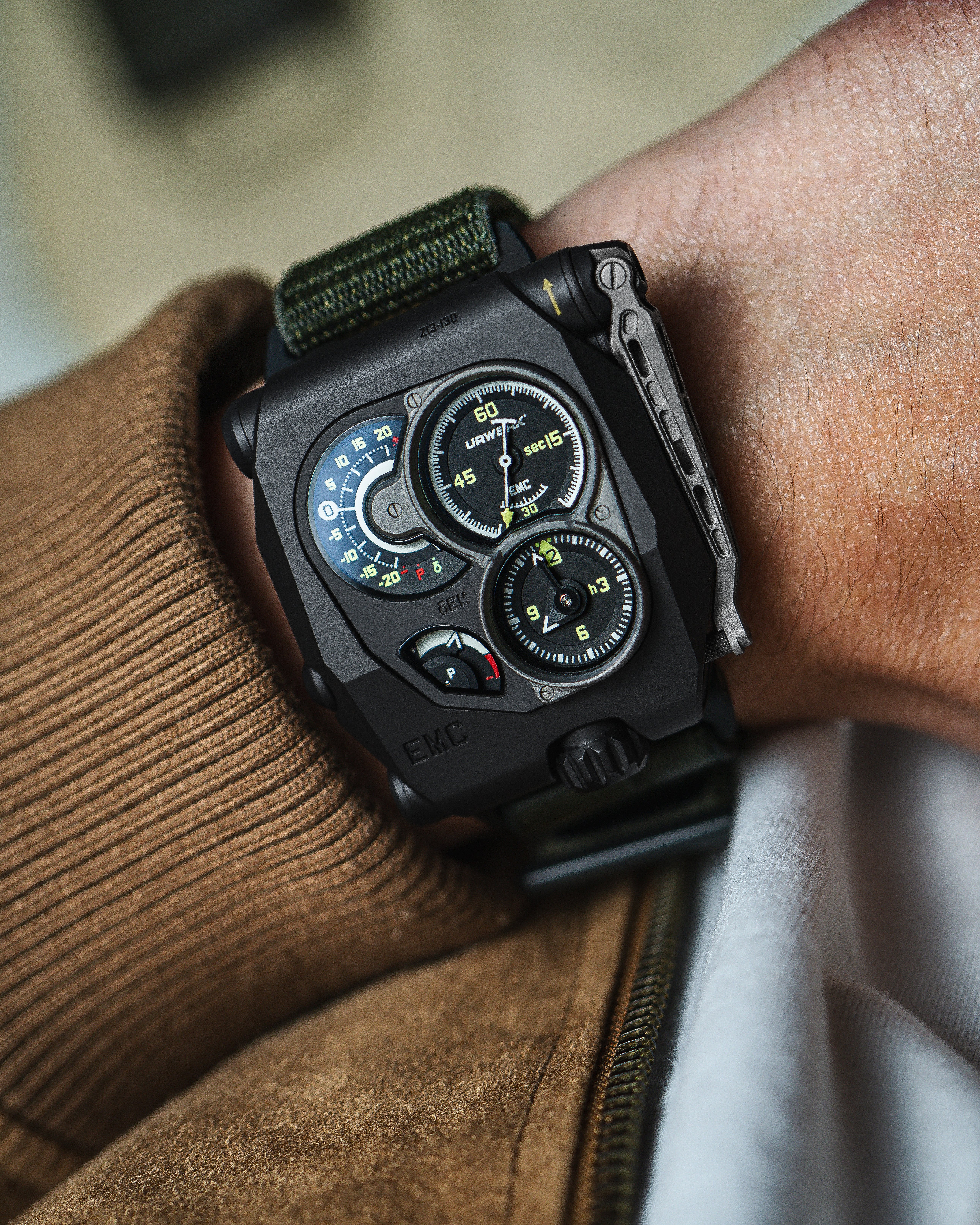 “The layout of the screens composing the dial is reminiscent of the SR-71’s cockpit instruments, and not without reason”, said Martin Frei, URWERK’s artistic director and co-founder . “A watch, like an aircraft, is a machine that provides information about its performance, adding that “the watch face is a personal cockpit; in addition to the exact time, the EMC also provides information about how it works and how it is ‘piloted’. It’s a unique and exciting experience.”