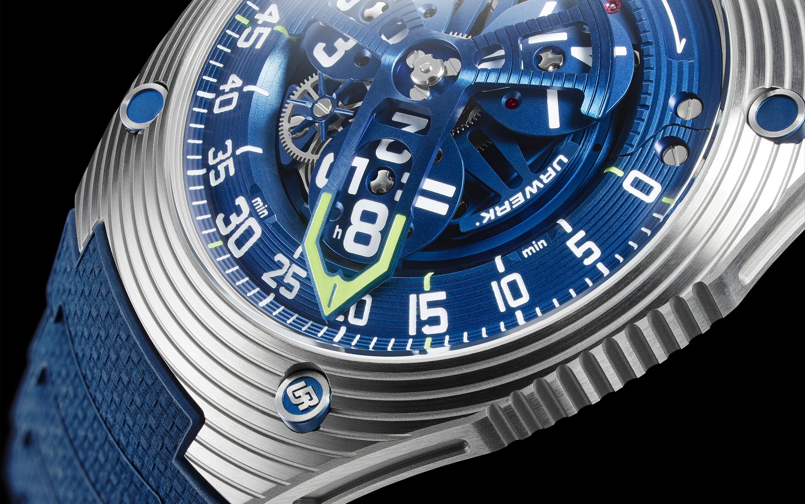 Urwerk is wielding an horological stinger with its new UR-150 Blue Scorpion watch. The luxury independent brand’s latest timepiece is a dynamic mechanical sculpture for the wrist that boasts some seriously impressive mechanics. At the heart of the UR-150 is a new satellite complication featuring a flying carousel, constantly in motion, which orbits three pivoting hour satellites. As the minutes tick by, a retrograde hand makes a deliberate sweep across a 240-degree arc. The real drama, however, happens at the top of the hour. In a synchronized, split-second sequence, the retrograde hand snaps back with lightning speed, while the three satellites simultaneously pivot on their axes and rotate 270 degrees.