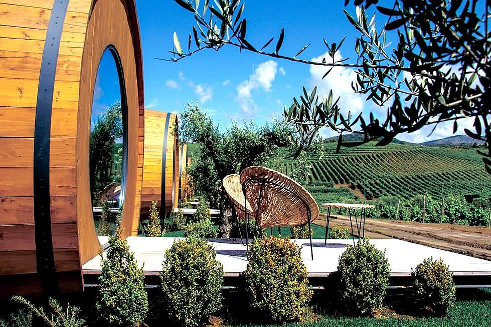 Attention all wine lovers: At the Quinta da Pacheca estate in Douro, Portugal, you can literally sleep inside of a wine barrel on a 140-acre vineyard.