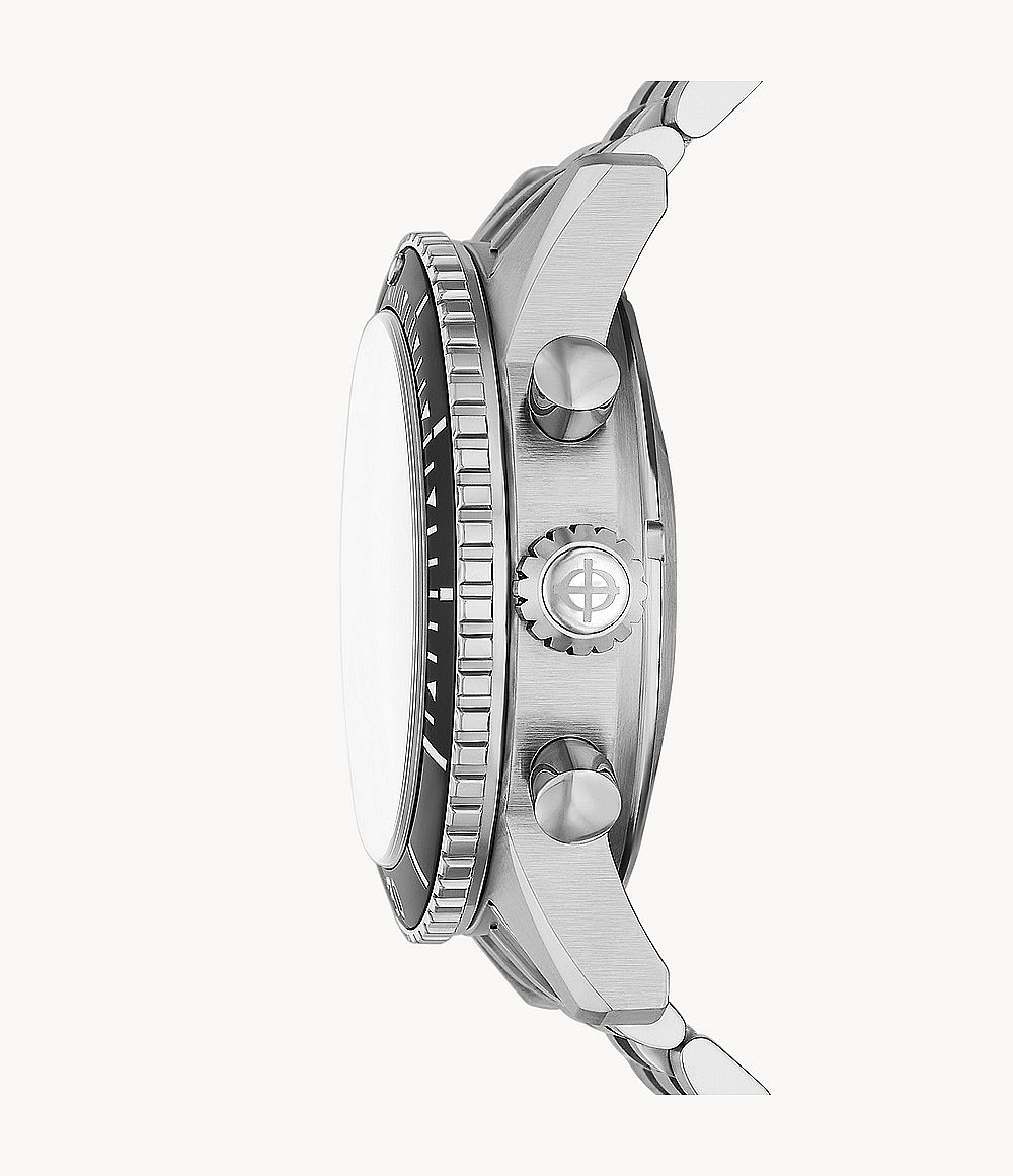 The watchmaker’s five-link stainless steel bracelet is the foundation for the new Sea-Chron, but the 20-minute elapsed timing bezel and added chronograph functionality (along with a tachymeter around the dial edge) bolster the utility of this rugged watch even further.