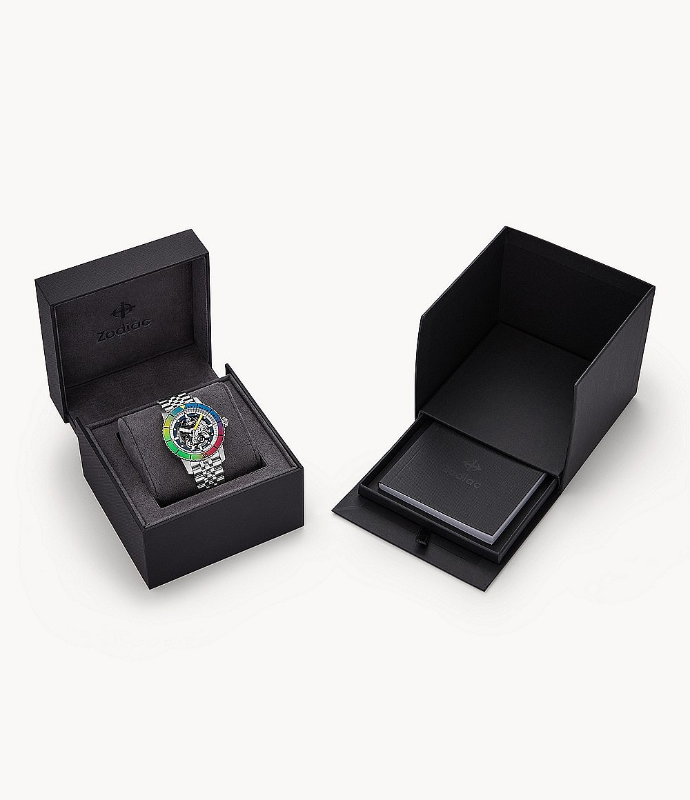 “Color has always been a pillar of the Zodiac design,” Zodiac Creative Director Ryan White says. “The Super Chroma bezel was our most daring use of color to date and a nod to our rebellious roots.”