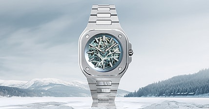 Featuring a fake cracked watch crystal to evoke frozen lakes on the North Pole.
