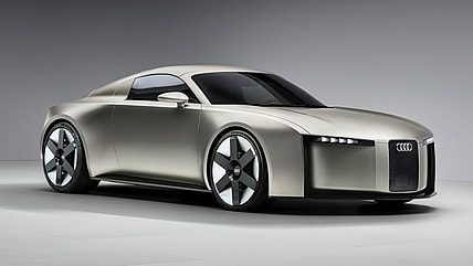 The sleek electric concept car "previews the future production model design philosophy for the four rings."