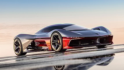 The sleek electric concept car "previews the future production model design philosophy for the four rings."