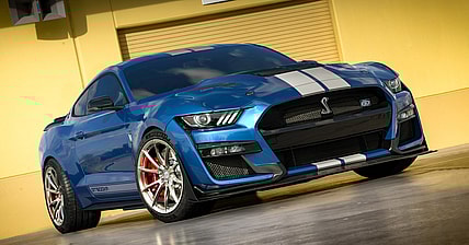 The high-performance Mustang loses the paint job and uses bonded carbon fiber for the doors to shave off 13 pounds…