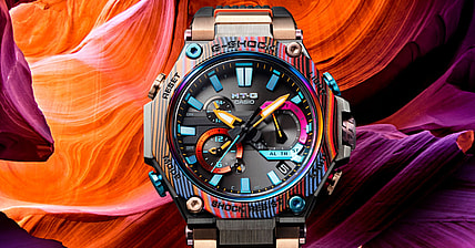 Vivid sandstone cave walls are channeled by carbon and colored glass in the limited-edition G-Shock MT-G.
