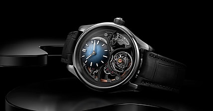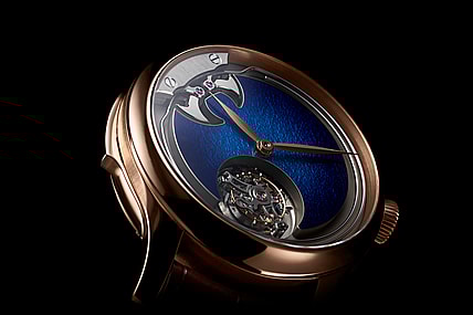 The one-minute flying tourbillon at 6 o’clock, visible through the skeletonized bridge, floats weightlessly above the “Grand Feu” enamel dial.