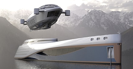 See the 243-foot carbon fiber concept fly above the water with three 5,000-horsepower engines in a wild animation.