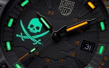 Luminox says the Jolly Roger defiantly illuminating the blackout dial symbolizes "ferocity, freedom and independence."