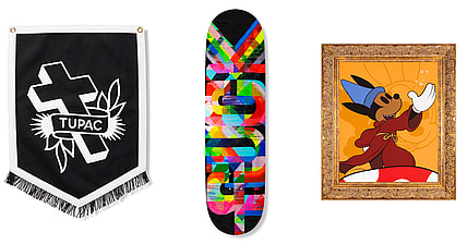 Snap up investment-worthy artworks made by everyone from art star Shepard Fairey to tattoo legend Mister Cartoon.