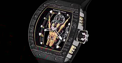 A gold skeleton hand in a "devil horn" salute is the centerpiece of this wild limited edition watch.