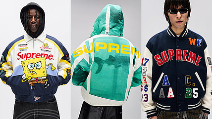 Supreme drops bold logo jackets, eye-catching caps, workwear pants and more.