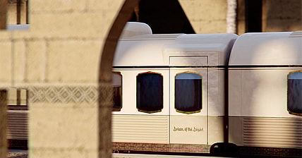 This ultra-opulent "rail cruise" ferries travelers from the east side of the U.A.E. across the Liwa Desert.
