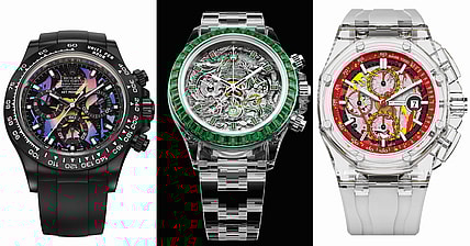 Rolex, Audemars Piguet, Patek Philippe and Richard Mille timepieces get bespoke makeovers featuring sapphire and high-tech ceramics.