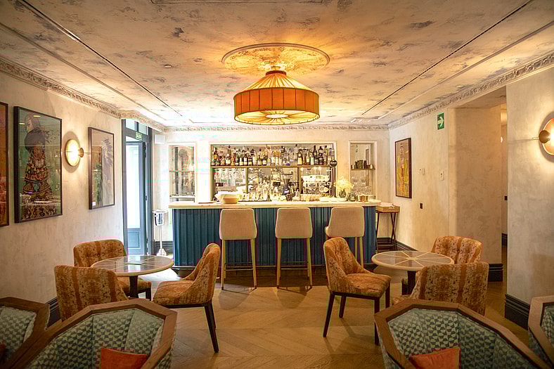 Designed to convey a visual impact upon arrival, another standout of the entrance is a public space once utilized as a ballroom, its ceilings supernaturally elevated and featuring the original medallion that held a chandelier that provided luminosity upon its visiting luminaries. It speaks of that intricate Madrid lighting that the owners obsessively romance over. It’s difficult to imagine a design concept that melds opulent Second Empire with function-forward nuances inspired by the great 19th century British architect and designer William Morris. This is not your ordinary hotel, more like entering a magical new world altogether.