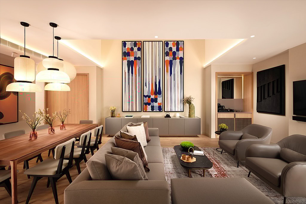 “A contemporary approach to both aesthetics and hospitality is employed throughout,” the brand notes, “taking inspiration from Japanese architectural disciplines and minimalist design, whilst utilizing a refined color palette influenced by heritage Japanese color combinations.”