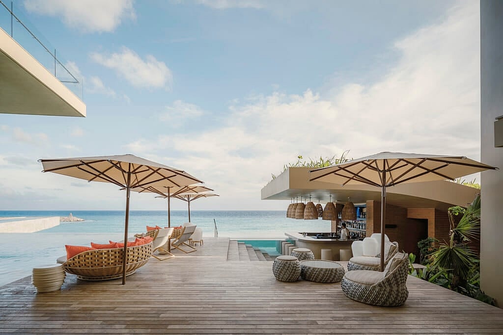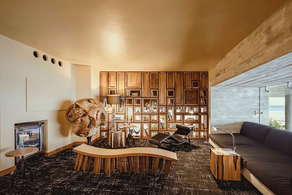 Dotted around the property are stylish little oases both in and out of doors, including the aforementioned library stocked with adult beverages, Le Corbusier lounge chairs, and and windows looking out to sea. The seaside bar is another favorite hangout offering easy access to the infinity pool and prime vistas.
