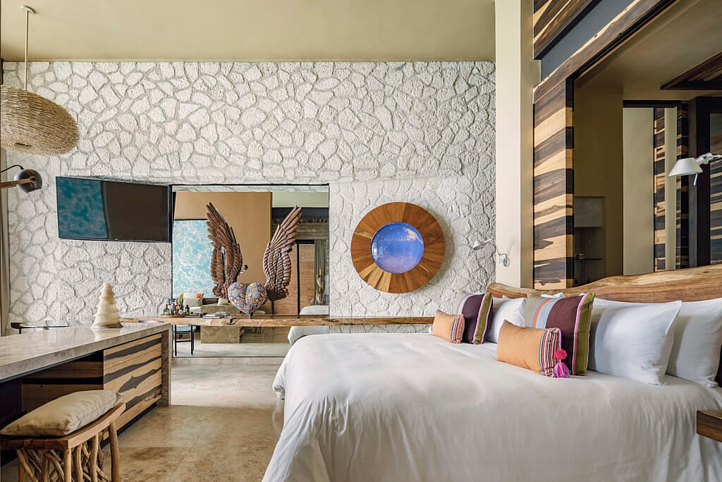 Offerings include Tuch de Luna, from celebrity chef Martha Ortiz, named one of the top 100 most influential personalities in Mexico, our favorite spot for breakfast with pool and sea views. And the playfully nautical Estero, at beachfront level, led by the equally-celebrated Virgilio Martínez, founder of the “author cuisine” style, who has frequently headlined the list of the 50 Best Chefs in Latin America.