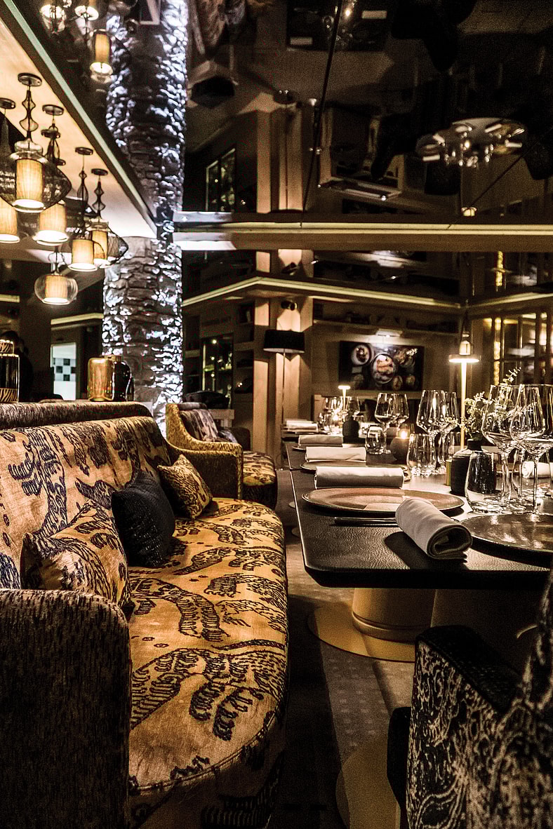Within its walls, amber-varnished furniture gleams, stained glass windows catch twilight like relics. Rooms striving for castlescale can feel chapel-small from wood paneling so dense and unrelenting it borders on stifling. Dining is an alpine fever dream of velvet, gilt, and heraldry. Tables overflow with audacity—langoustines, oysters, truffle-flecked clouds of soufflé. You can also order regional tartiflette, if beneath the palace veneer lie more rustic, stubborn pleasures.