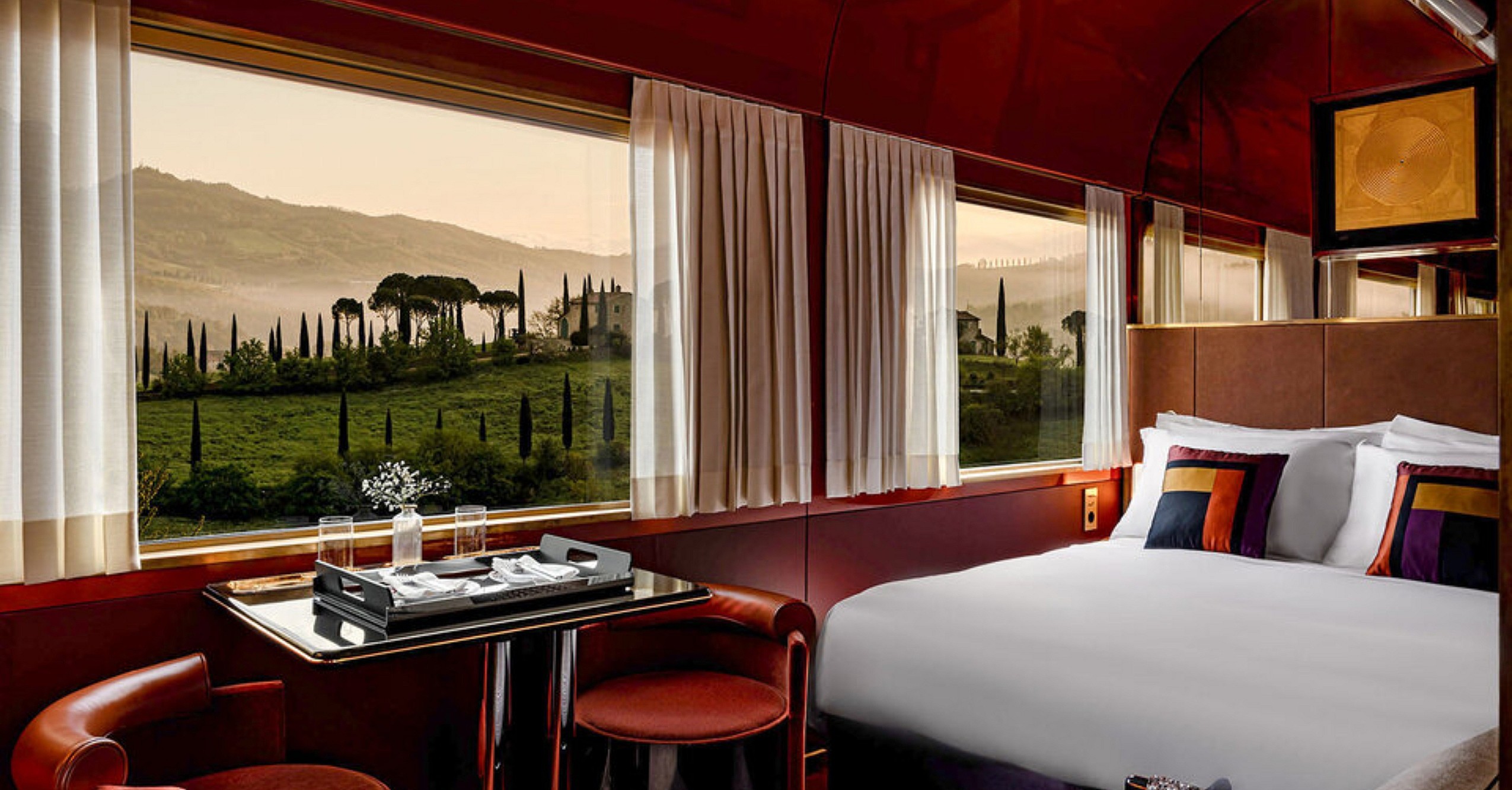 The ambitious set of itineraries encourages enterprising travelers to “indulge in the enchanting radiance of La Dolce Vita, calling the ride an ode “to the allure of an iconic train’s pure elegance and delights,” as well as a surefire way to experience “an unforgettable voyage through Italy.” Its Ristorante features a menu curated by Michelin-starred chef Heinz Beck, to go along with room service covering a “delightful array of savory Italian delicacies,” just one among many things to love about this exceptional train travel experience.