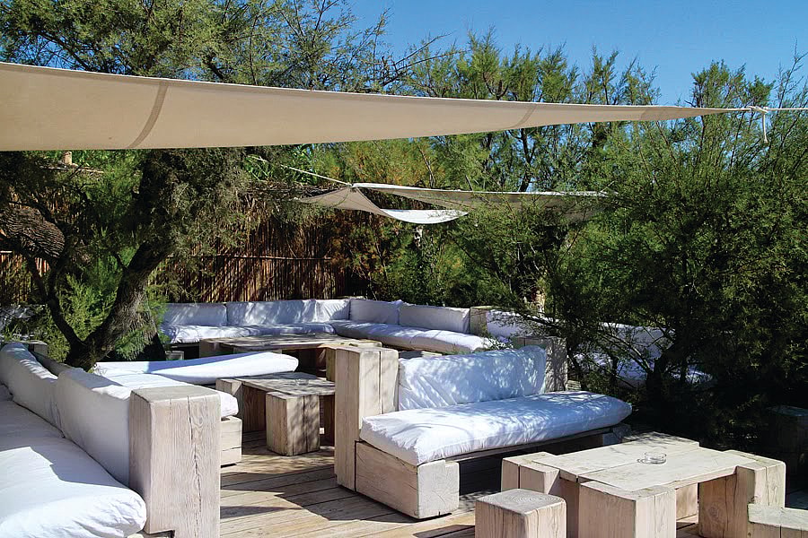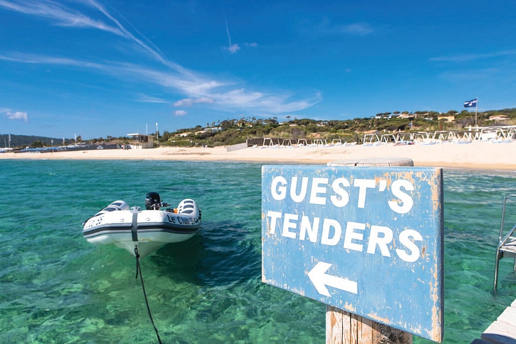 The guests, who come dressed in everything from elegant outfits to low-key beachwear, arrive from both the mainland and the turquoise sea. Among the more affluent clients, it is not uncommon to dock one’s yacht off the shore, and then take a small boat to the little pier at Pampelonne beach.