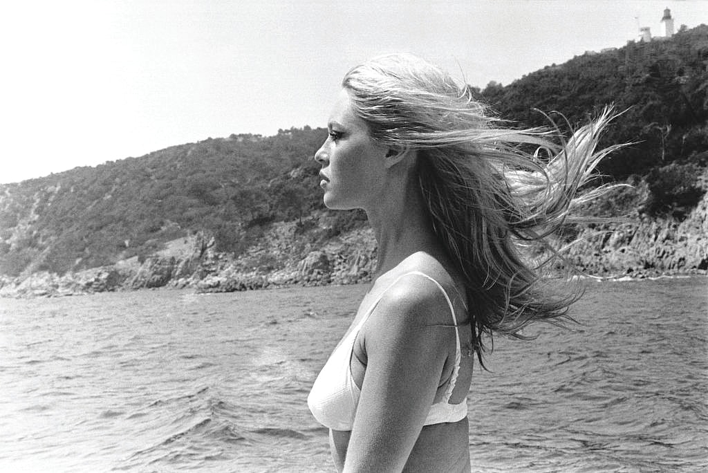 Brigitte Bardot and her costar Christian Marquand painstakingly get out of the water and fall exhausted on the sand of the seemingly deserted beach. When she gets up, Bardot’s wet shirtdress is half open, and after a few teasing invitations from her side, an erotic scene soon unfolds by a pine tree a little higher up the shore.