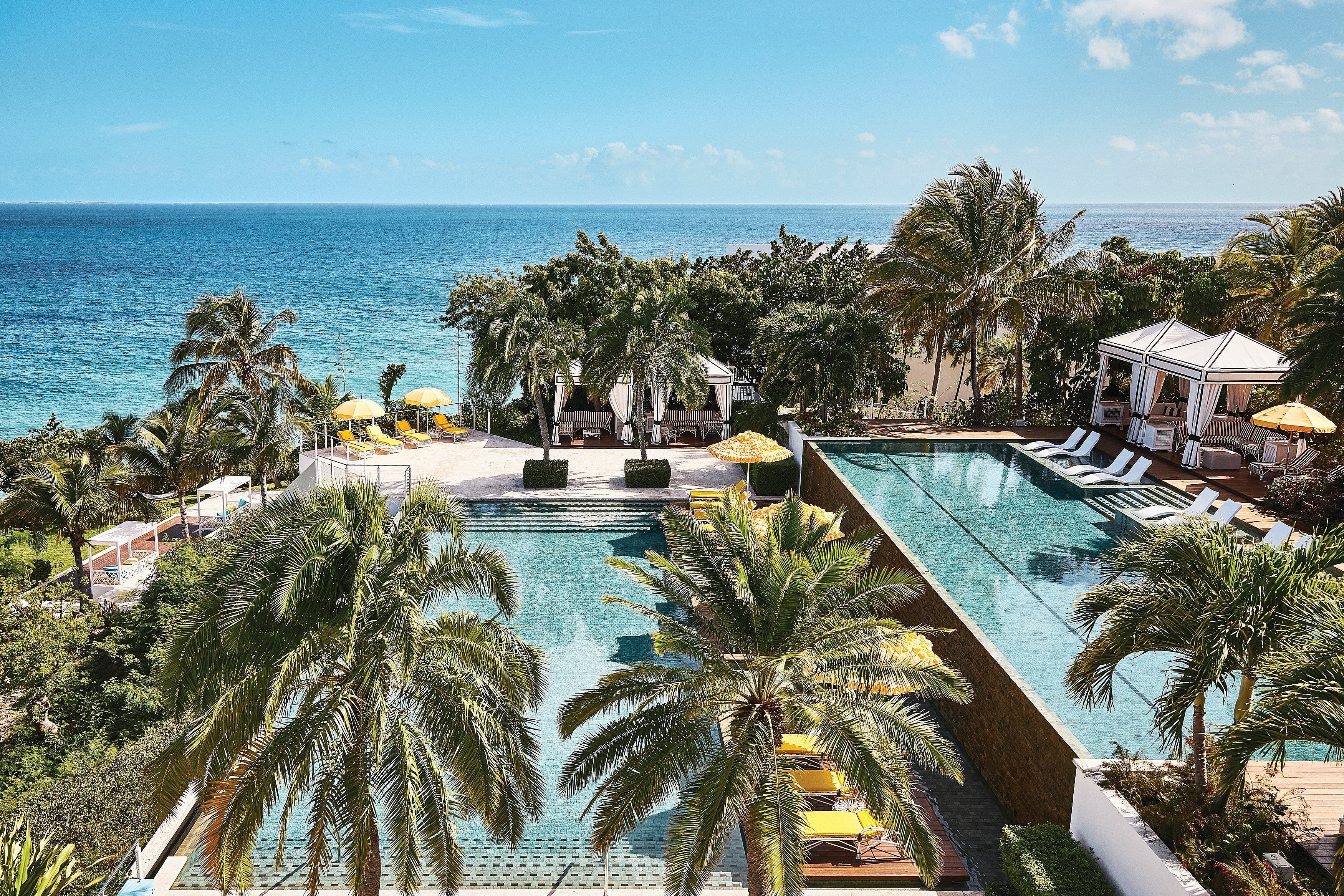 Aarons would find a lot more to like since his visit to Anguilla. The hotel, known for its signature pops of yellow, now has an Instagram-famous two-tiered infinity pool, world-class dining experiences centered on Celeste, which blends the best of Caribbean and Mediterranean cooking, a beach bar, rum tastings, an expansive new spa offering every pampering treatment under the sun, an indoor and outdoor gym, plus basketball, tennis and pickleball courts. The timeless quality is not altogether incidental—there are literally no clocks on the property, while televisions, a recent concession to modernity that were never installed previously, are cleverly concealed behind mirrors so as not to spoil the vintage-inspired décor.