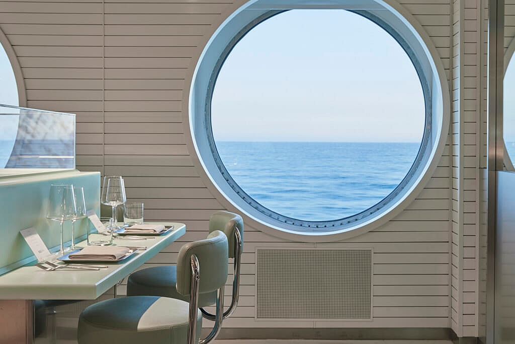 “All of our restaurants allow you to dine, as you would on land, with a full choice of a la carte menu, except for this one. VV likes to make a rule and then break a rule. We broke our own rule with Test Kitchen and created an amazing Michelin-inspired tasting menu where our guests are treated to a set menu. When Test Kitchen was designed with Concrete Amsterdam, we wanted a food-centric space and agreed the best table in any restaurant is the chef’s table.