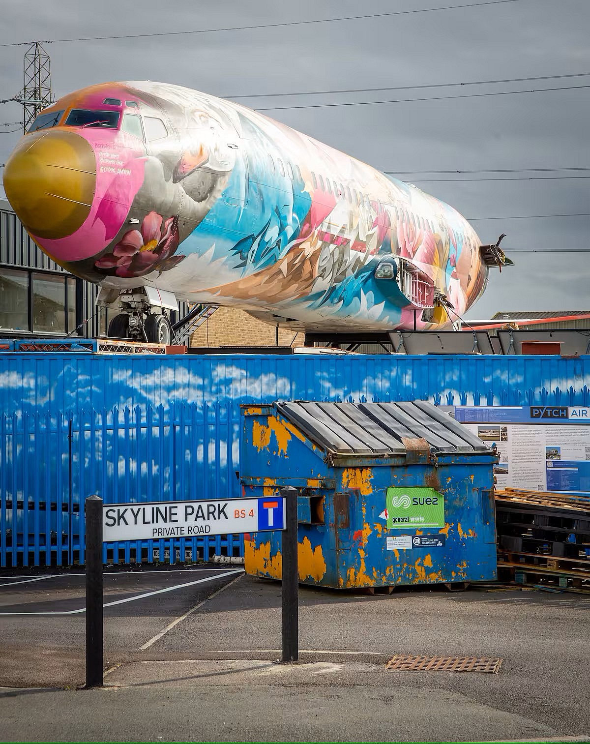 Palmer noted that none of his neighbors at the Skyline Park industrial estate in Bristol have complained about the 150-foot-long plane, which sits 32 feet in the air. “On industrial estates people don’t really care what you do because, visually, they are not very nice,” he said.