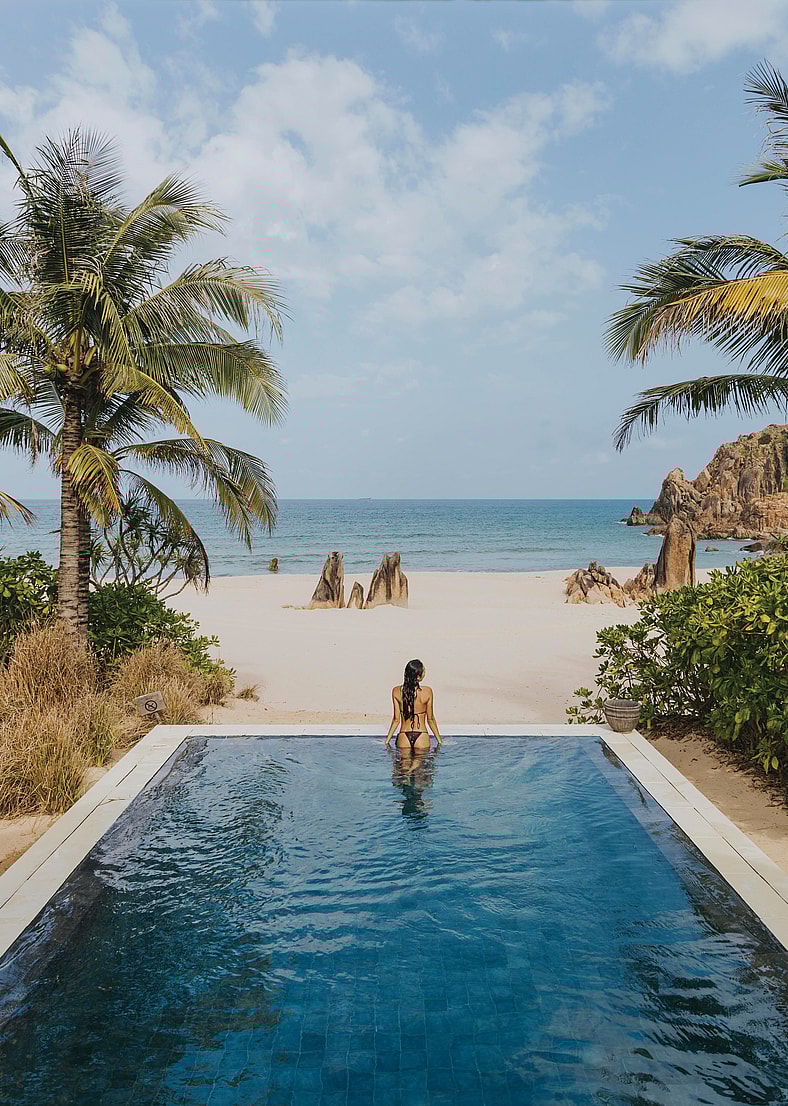 Some days that might be an expedition around the Phú Yên province, or enjoying water sports like kayaking, snorkeling, or even electric hydrofoiling across the “Bay of Corals.” Many of our most memorable adventures were curated by luxury travel specialists Black Tomato, who granted us access into secret corners of Vietnam seamlessly. On other days, nothing clogs the personal itinerary other than lost hours sunning on the golden sand, enjoying the gently lapping waves of the Zannier’s kilometer-long protected beach, or soaking in your private infinity pool, reading Kurt Vonnegut with an icy glass of Campari Americano. Deeply inhaling the plumeria and jasmine trees filling the space with the aromatics of royalty, a soft breeze occasionally wafting in from the ocean, carrying some of the heat off your skin.