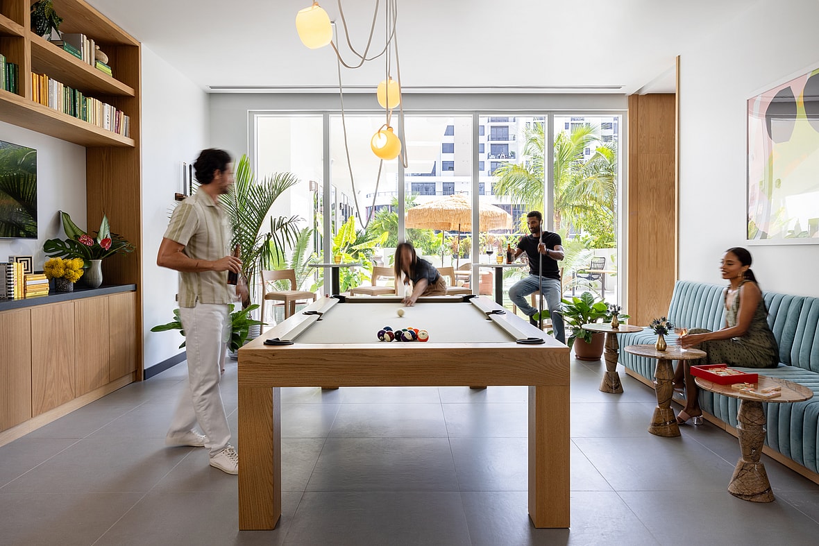 The sprawling rooftop with panoramic neighborhood views, a picture-perfect pool, private cabanas, and a bar and café, is the spot to be on sunny days. It definitely makes up for not being next to the beach. There’s also a yoga deck and a pool table in the indoor lounge at Higher Ground if you prefer to hang indoors.