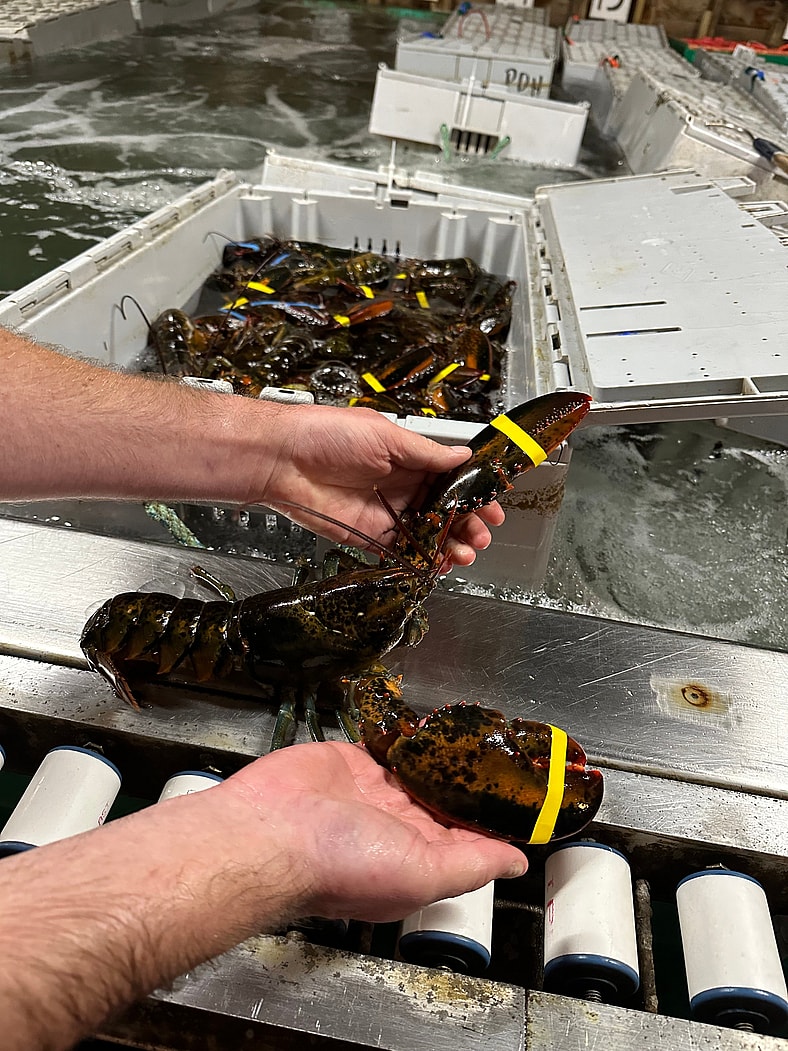 From the top-floor windows, we watched a big ship come into port and an old man in a tiny boat who looked like he’d rowed out of an oil painting, while devouring a flight of lobster rolls. After dinner, Luke’s Assistant GM Brian Noble gave us a tour of their lobster operation. They have a dock on the property where lobster boats can unload their catch. Once inside, they’re kept in circulating and temperature controlled water that mimics the ocean for never longer than a day or two before they’re sold to points around the globe. Noble explained to us that bigger is not better with lobster, and there is an optimal size for flavor and tenderness—turns out “average” is actually ideal.
