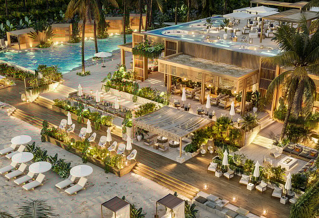 The beach club in particular is a design masterpiece. It will feature a main restaurant, various oceanfront terraces, and a rooftop with panoramic views and opulent private cabanas, among other highlights. To date, the main reception area, a total of 188 guestrooms, the new Hix Lobby Bar & Lounge, and new Tauro Steakhouse have been completed, and extremely well received.