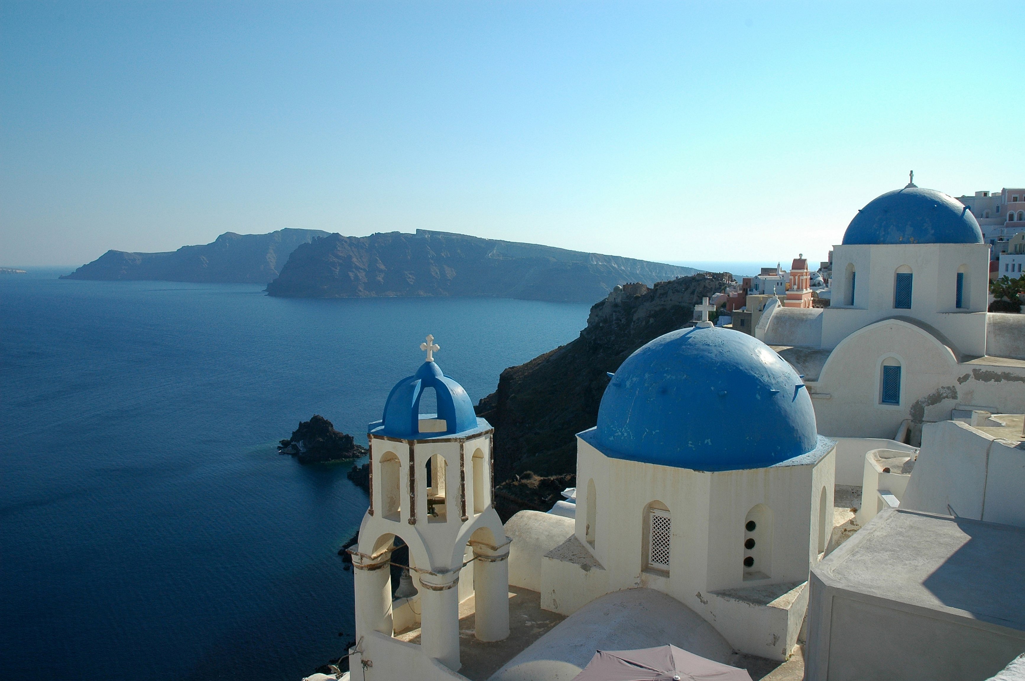 The other hotspot is Santorini where a chairlift takes you to Fira which sits perched on the lip of a massive caldera. The island is part of an atoll where you can swim amid warming vents from the still active volcano whose eruption in 1600 BC laid waste to many ancient sites throughout the Cyclades. The cerulean domes of Fira complement the white churches and domiciles, hotels and restaurants affording unmatched views in this bustling tourist town.