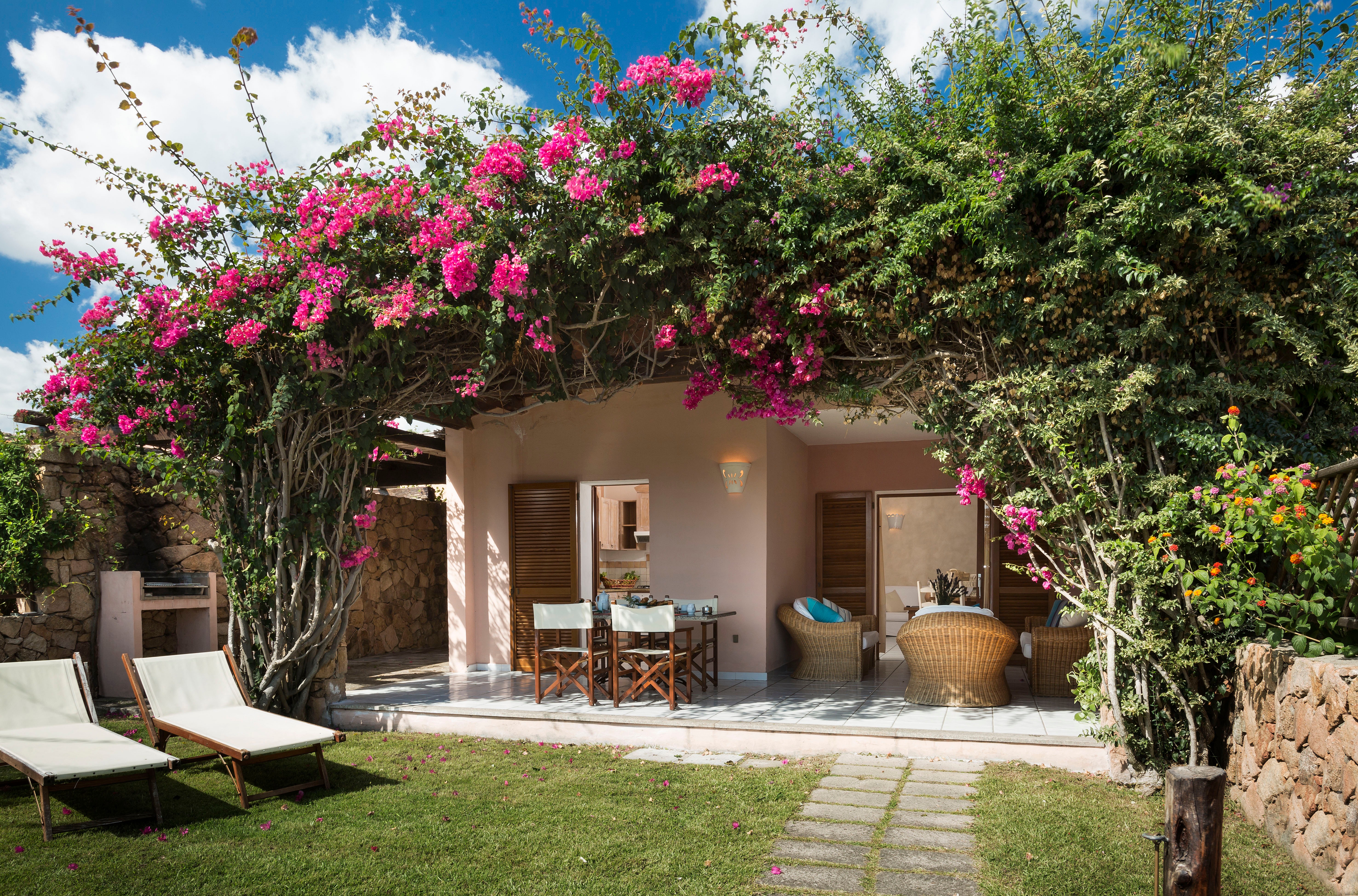 The largest of the villas accommodates eight or more guests, and includes outdoor seating among the gardens, as well as barbecues, the use of electric vehicles and of course access to the main pool, tennis courts, beach volleyball courts, as well as the resort’s scenic 9-hole golf course and the Thalasso spa at the hotel’s sister property in nearby Capo d’Orso.