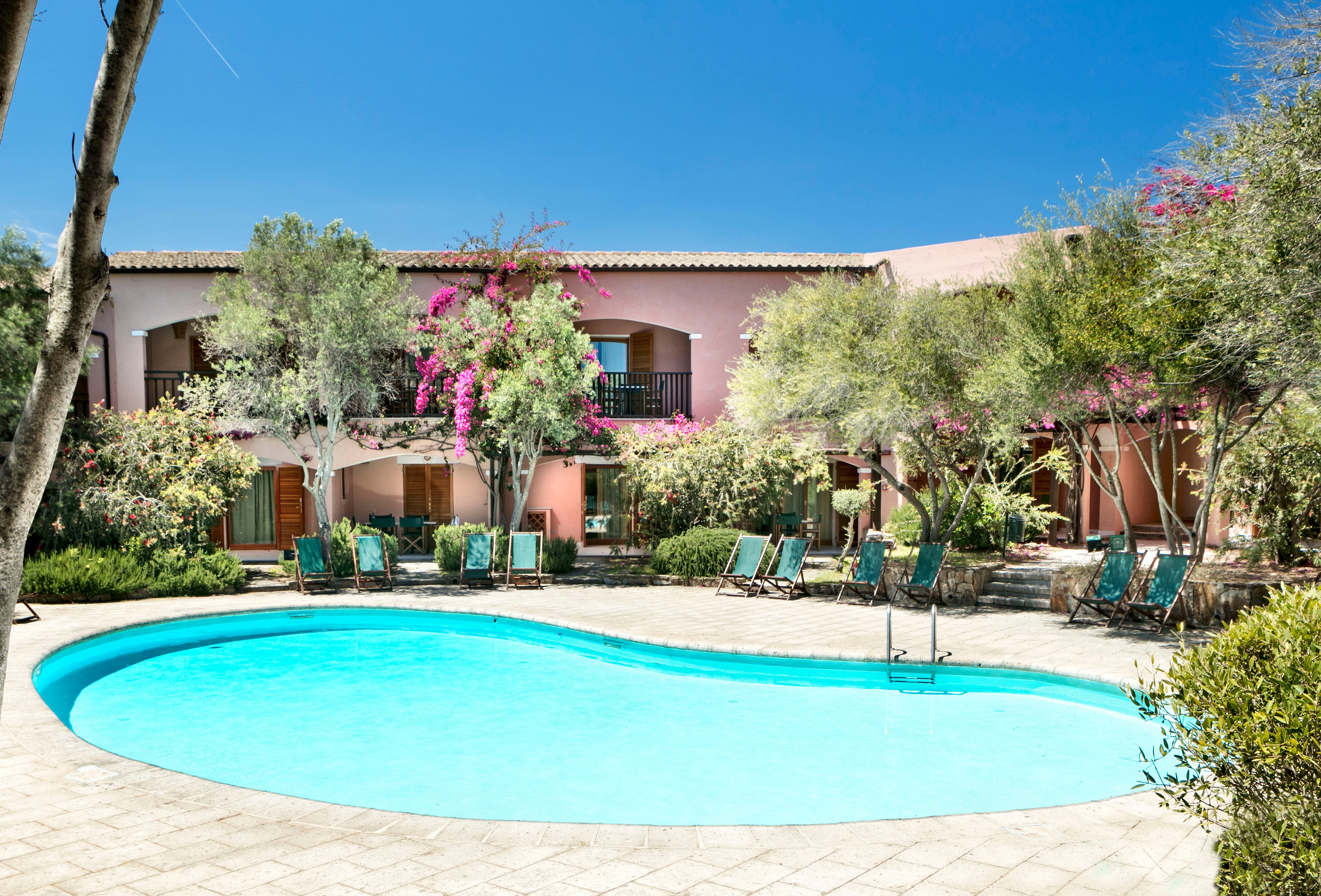 Nearly all rooms and villas have a view of the coastline of the Golfo di Arzachena, which stretches miles over alluring inlets, cliffs, and beaches. A number of recently refurbished apartments, set along the poolside, include one-to-three bedroom spaces with full kitchens. The area is known for its farm markets and numerous purveyors of the food, produce and wine the region in justly famous for.