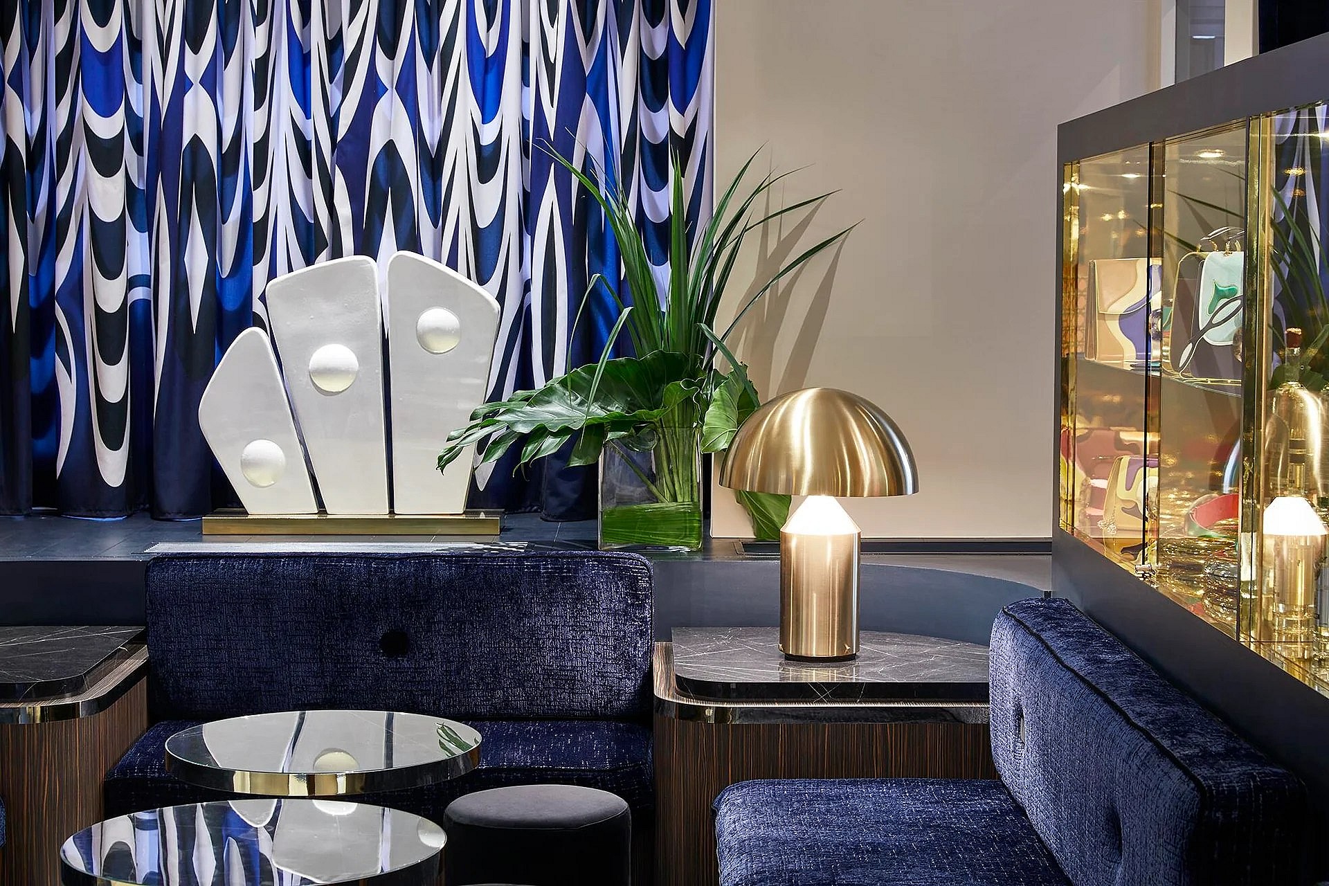 armchairs set the tone” in the space designed by Geraldine Prieur who approached the project with “an audacious and modern spirit.”