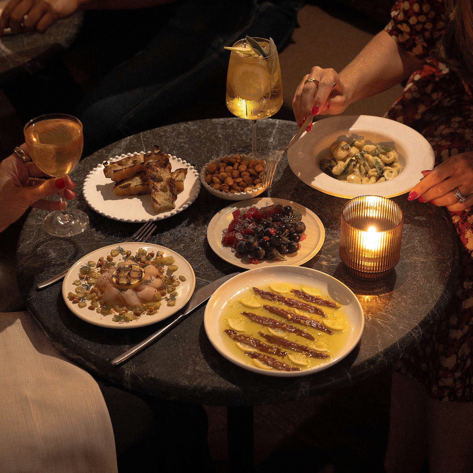 During a recent dinner service, standouts included ricotta dumplings jazzed up with guanciale and arrabbiata that could have masqueraded as meatballs, skate cheeks with polenta and brown butter, braised veal osso buco with olives and lentils, and a refreshingly crunchy salad of shaved artichokes, celery, sunchokes and parmesan. Caletta, Bastia’s newly-opened sister property near the tiled pool patio, is a 24-seat cocktail lounge and piano bar offering bougie bar snacks like Italian sturgeon caviar and cured egg yolk in a fine herb salad and saffron arancini stuffed with smashed chickpeas and mint on black truffle fonduta.